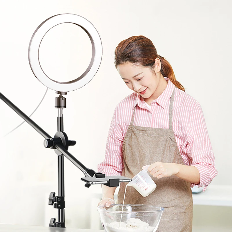 26CM Selfie LED Ring Light With Adjustable Desk Phone Shooting Bracket Stand Photography ringlight Tripod Stand Boom Arm Youtube